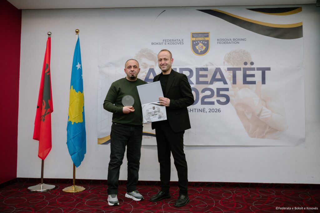 Prishtinë, 05 shkurt 2026 – Federata e Boksit e Kosovës ka shpallur sot laureatët e çmimeve vjetore për vitin 2025, në një ceremoni solemne ku u vlerësuan boksierët, trajnerët, gjyqtarët, klubet dhe personalitetet që kanë dhënë kontribut të veçantë në zhvillimin e sportit të boksit në vend.