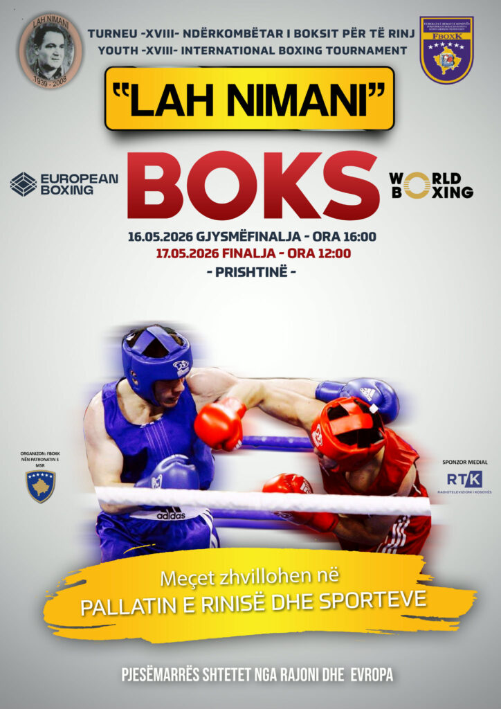 Turneu Ndërkombëtar i Boksit për të Rinj (Youth) U19 “Lah Nimani” do të mbahet më 16 dhe 17 maj 2026 në Pallatin e Rinisë dhe Sportit në Prishtinë. Federata e Boksit e Kosovës (FboxK) organizon këtë turne për herë të 18-të, duke vazhduar një traditë të rëndësishme sportive në vend. Ky është turneu i vetëm i këtij lloji në Kosovë dhe organizohet në nderim të figurës së shquar të boksit…